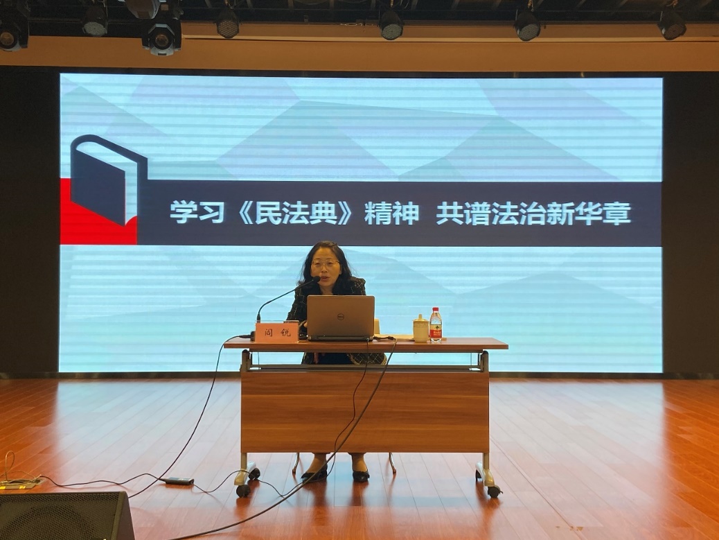 《中华人民共和国民法典》共7编、1260条,各编依次为总则编、物权编、合同编、人格权编、婚姻家庭编、继承编、侵权责任编,以及附则。阎锐主要围绕认识民法典、民法典的编纂历程、民法典的立法体例及重要意义、民法典的核心要义和新增亮点等方面对《中华人民共和国民法典》进行了系统全面的阐述解读。她讲到,《中华人民共和国民法典》在国家立法进程中具有里程碑式的地位,它不仅仅是“民事权利的宣言书”,更是“社会生活的百科全书”,对民商法体系中的法律进行了系统化编纂,涵盖生活的方方面面,是一部集大成的综合性法典。她表示,《中华人民共和国民法典》具有典型的中国特色,集中体现在网络时代的大背景下,对于人权的愈发尊重和重视,是国家以人民为中心的重要体现和举措。辅导报告理论联系实际,以案释法,深入浅出地详细解读了《中华人民共和国民法典》七则中新增条款的内涵和外延。