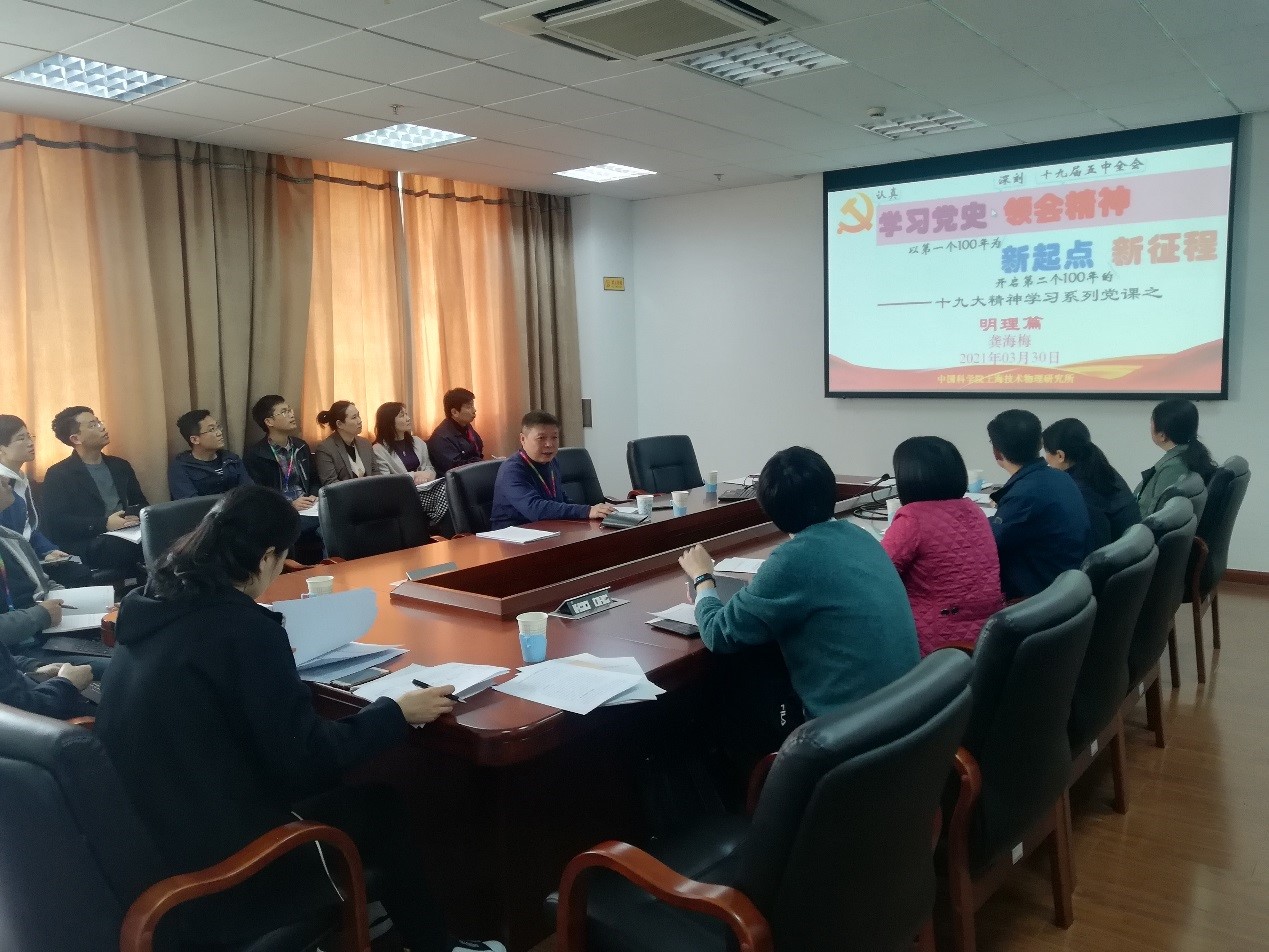 会上,龚海梅在领学习近平总书记在党史学习教育动员大会上的讲话精神的基础上,作“学习党史 领会精神 新起点 新征程”专题党课报告。他从党史与型号任务研制的各阶段对比引入,重点分享了党史学习教育如何做到“知行合一”。他要求全体党员带头继续坚守以满足国家重大需求为己任的初心,担起红外光电技术科技强国的使命;党委副书记童卫旗领学了《中国共产党党员权利保障条例》《中国共产党统一战线工作条例》,他要求各党支部加强条例的学习和贯彻落实,融入部门年度中心工作,做好支部的各项工作;综合办负责人传达了所2021年党建工作要点、2021年纪委工作要点和所党史学习教育实施方案,并要求各党支部按照党史学习实施教育方案组织落实好工作。
