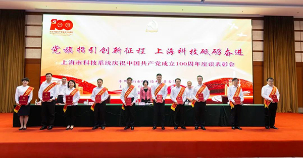 在庆祝中国共产党成立100周年之际,上海市、上海市科技党委等上级党组织表彰了一批优秀共产党员、优秀党务工作者、先进基层党组织。