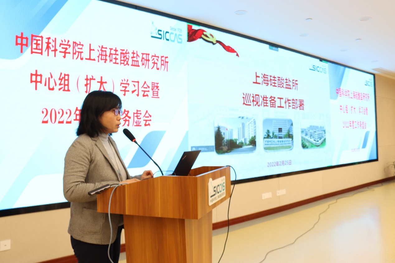 会上,副所长苏良碧领学了侯建国院长作的中科院2022年度工作会议报告。副所长沈兆雷传达了中科院副院长、党组副书记阴和俊在调研上海硅酸盐所时的讲话。纪检监督审计室副主任马晓利对巡视准备工作进行了传达部署。各职能部门负责人结合工作实际,对2022年度重点工作进行深入探讨,提出了具体工作举措和抓手。