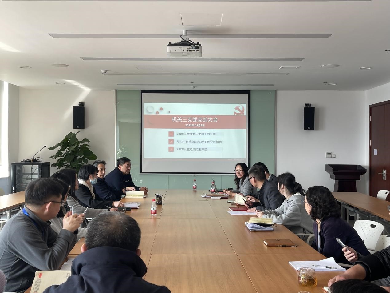 3月2日下午,中国科学院上海硅酸盐研究所机关第三党支部召开2021年度组织生活会,总结2021年度党支部工作,专题学习中科院2022年度工作会议精神,并开展民主评议党员。上海硅酸盐所党委委员、副所长沈兆雷以普通党员身份参加会议,支部党员共计二十余人参会,会议由党支部书记宋桂兰主持。