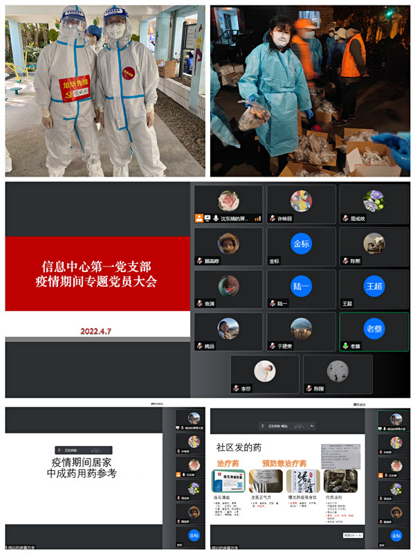 2022年4月7日下午,信息中心第一党支部通过线上会议方式召开疫情期间专题党员大会。会上共同学习了两会精神及习近平总书记在中共中央政治局第三十六次集体学习会上的讲话精神,就疫情期间支部党员服务社区、参加志愿者工作进行系统梳理,并对此开展经验交流和再动员。同时,逐一排摸疫情期间党员生活及工作情况,对存在生活困难的党员进行现场协调和解决,切实履行“我为群众办实事”指导思想,做到党员冲锋在前勇担责、支部保障在后稳人心。