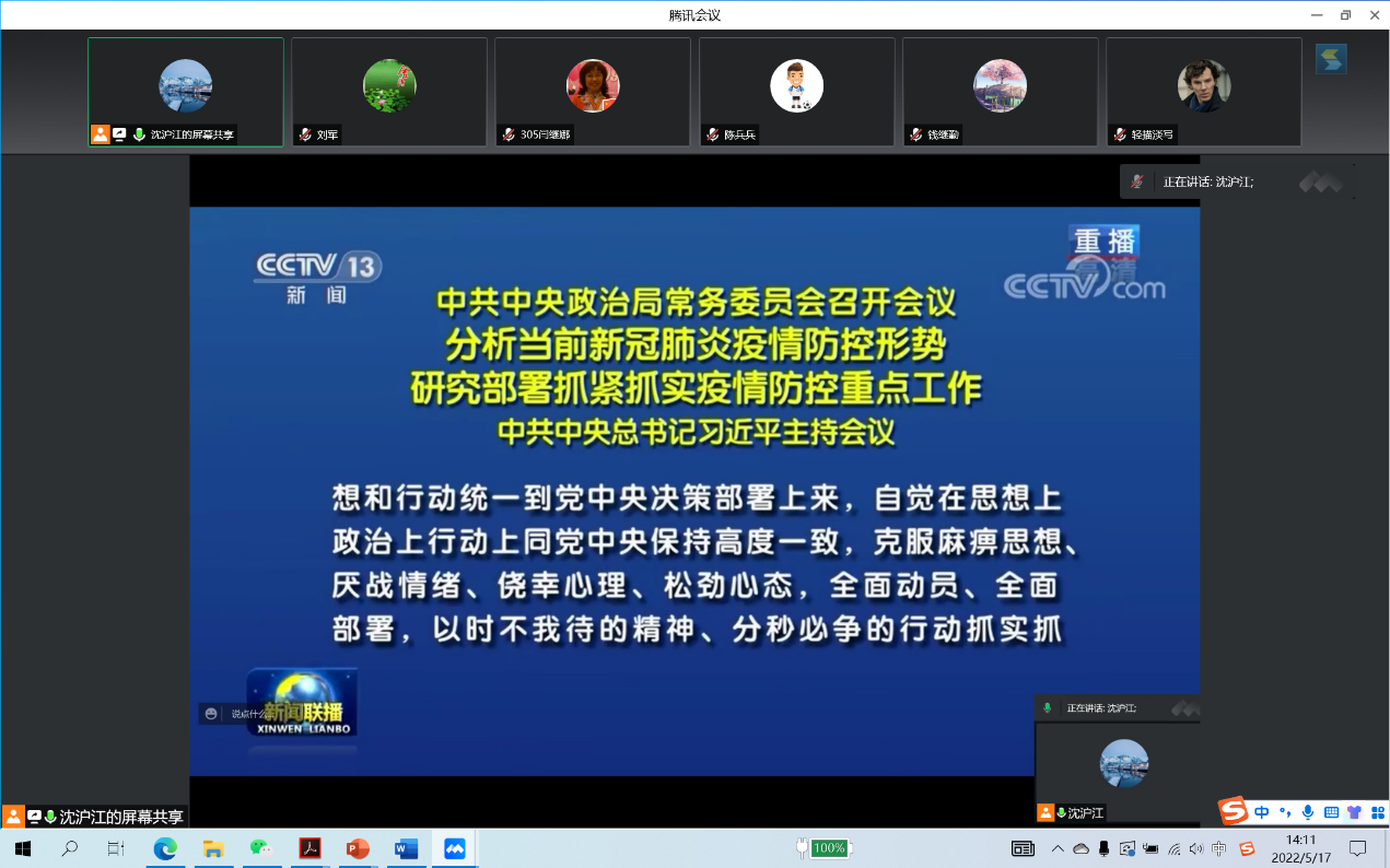 学习会上,支部宣传委员吴永庆汇报了支部党员群众在研究所嘉定园区和长宁园区以及各自社区的志愿抗疫事迹。支部16位党员群众第一时间响应所党委号召,完成线上线下双报到,以不同形式迅速投身一线,在保障研究所重点科研任务攻关、组织所在社区居民积极抗疫等方面贡献了自己的力量。