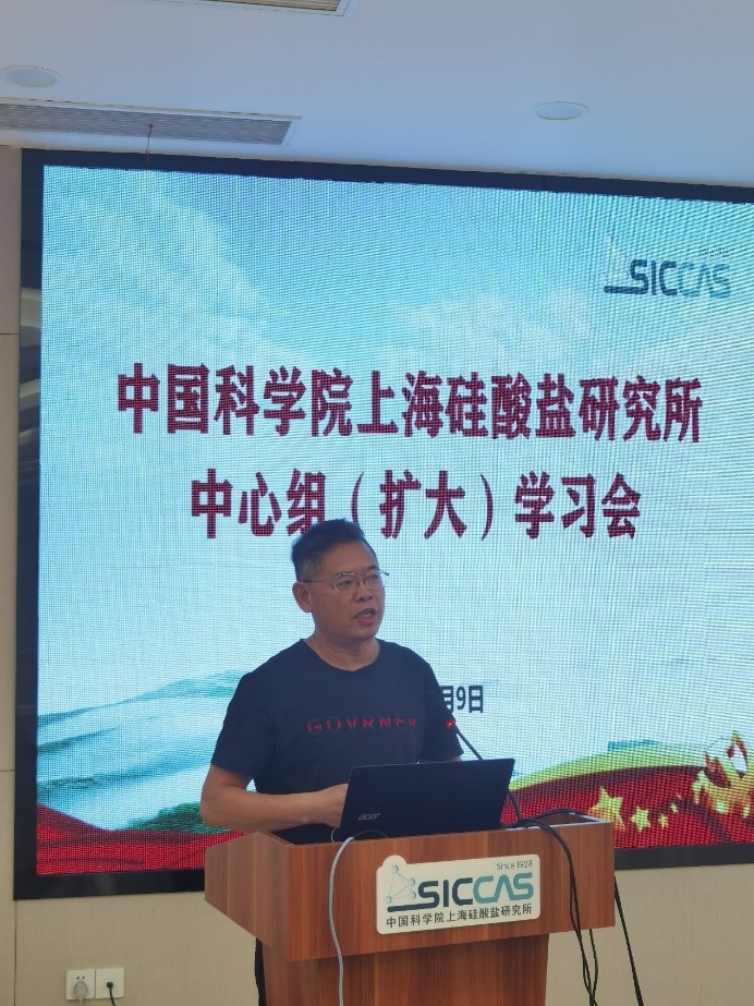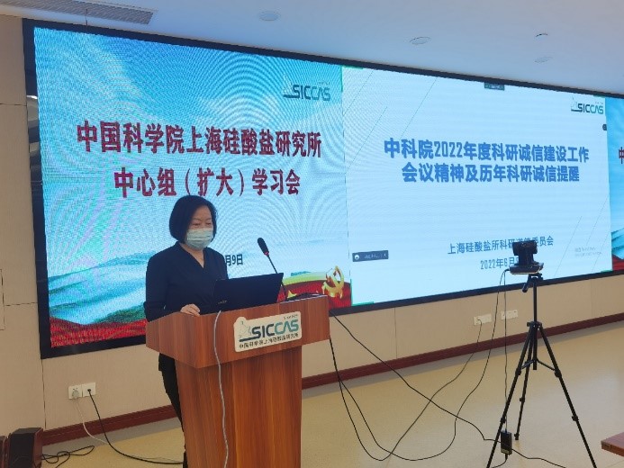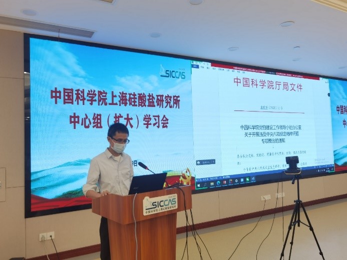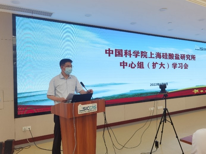 6月9日下午,中国科学院上海硅酸盐研究所组织召开中心组(扩大)学习会,学习贯彻习近平总书记致首届全民阅读大会贺信精神,传达中科院2022年度科研诚信建设工作会议精神及中科院历年科研诚信提醒,开展“严谨表述、虚心治学”学风建设专项工作部署、违反中央八项规定精神问题自查自纠工作部署,研讨贯彻落实院2022年度工作会议重点任务情况与研究所年度工作目标。所领导、两委委员、业务部门正职、职能部门正职等参加现场会议,党支部书记、工青妇组织负责人、其他负责人等通过线上方式参会。会议由党委副书记、纪委书记杨建华主持。