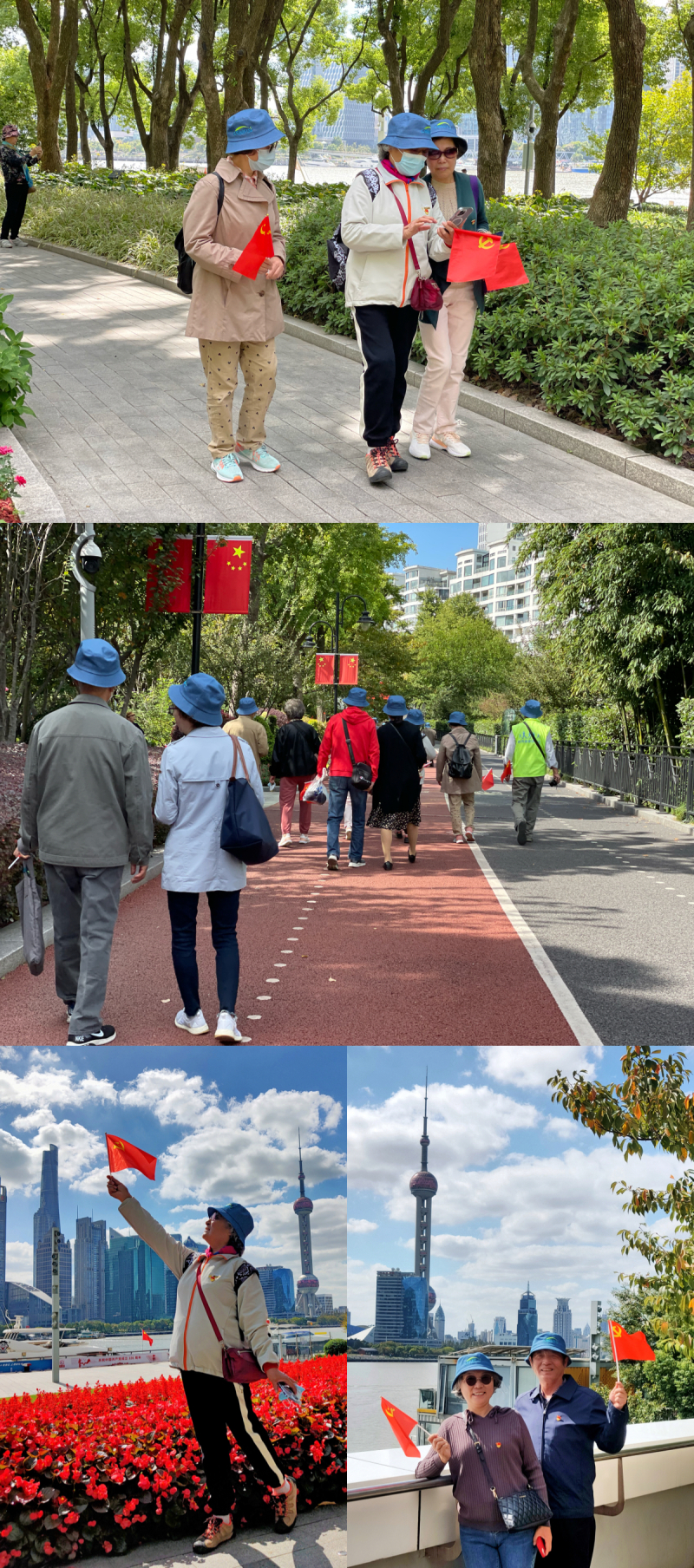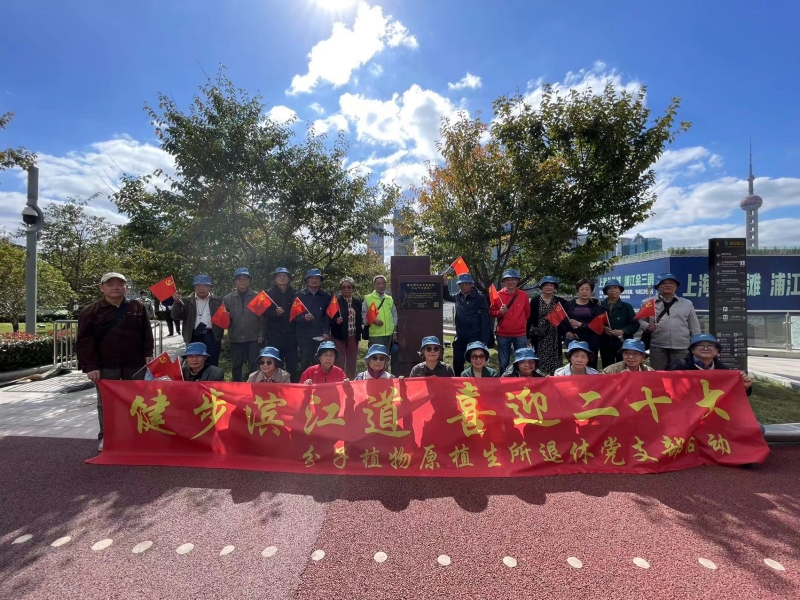 10月20日上午,一群头戴蓝色帽子手拿党旗的可爱老同志们在地铁12号线提篮桥出口陆续集合,他们是来自分子植物卓越中心的退休党员,在这里开启“学习二十大 健步滨江道”主题党日活动。此次活动由离休退局支部、原植生退休支部联合组织,共有26位老党员和4位为老服务志愿者团队老师参加。