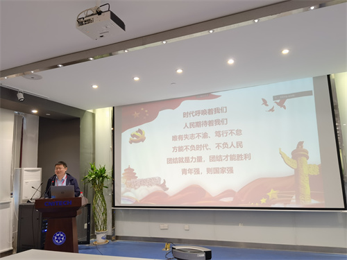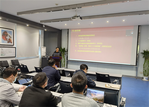 会上,党支部书记张驰向全体党员作《党的二十大精神学习》专题党课报告。报告强调,党的二十大是在全党全国各族人民迈上全面建设社会主义现代化国家新征程、向第二个百年奋斗目标进军的关键时刻召开的一次十分重要的大会,在党和国家历史上具有里程碑意义,同时具有广泛的世界影响。张驰书记重点向党员同志分享了《实施科教兴国战略,强化现代化建设人才支撑》部分的学习体会,指出“必须坚持科技是第一生产力、人才是第一资源、创新是第一动力”“坚持创新在我国现代化建设全局中的核心地位”,为我们一线科技工作者指明了前进方向、提供了根本遵循。张驰书记号召青年科技工作者要聚焦主责主业,心系“国家事”、肩扛“国家责”,强化国家战略科技力量使命担当,为实现高水平科技自立自强,狠抓工作落实,做好表率。最后,张驰书记要求全体党员要深学细悟党的二十大报告原文,深入学习领会大会精神,更加紧密地团结在以习近平同志为核心的党中央周围,贯彻好、落实好党的二十大作出的各项决策部署。