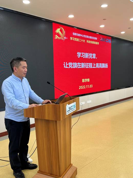 组织委员陈学锋以“学习新党章,让党旗在新征程上高高飘扬”为题,领学了党的二十大通过的《中国共产党章程(修正案)》主要修改内容及其重大意义。通过学习,大家深刻明白了新党章充分体现了党的十九大以来以习近平同志为核心的党中央在理论创新、实践创新、制度创新上取得的新成果,蕴含着对新时代新征程党和国家事业发展的新要求。大家表示,每位党员应该更加深刻领悟“两个确立”的决定性意义,坚决做到“两个维护”,更加自觉地学习党章、遵守党章、贯彻党章、维护党章,在党的领导下,弘扬伟大建党精神,团结奋斗向前进,与时俱进向未来,让党旗在高水平科技自立自强新征程上高高飘扬。