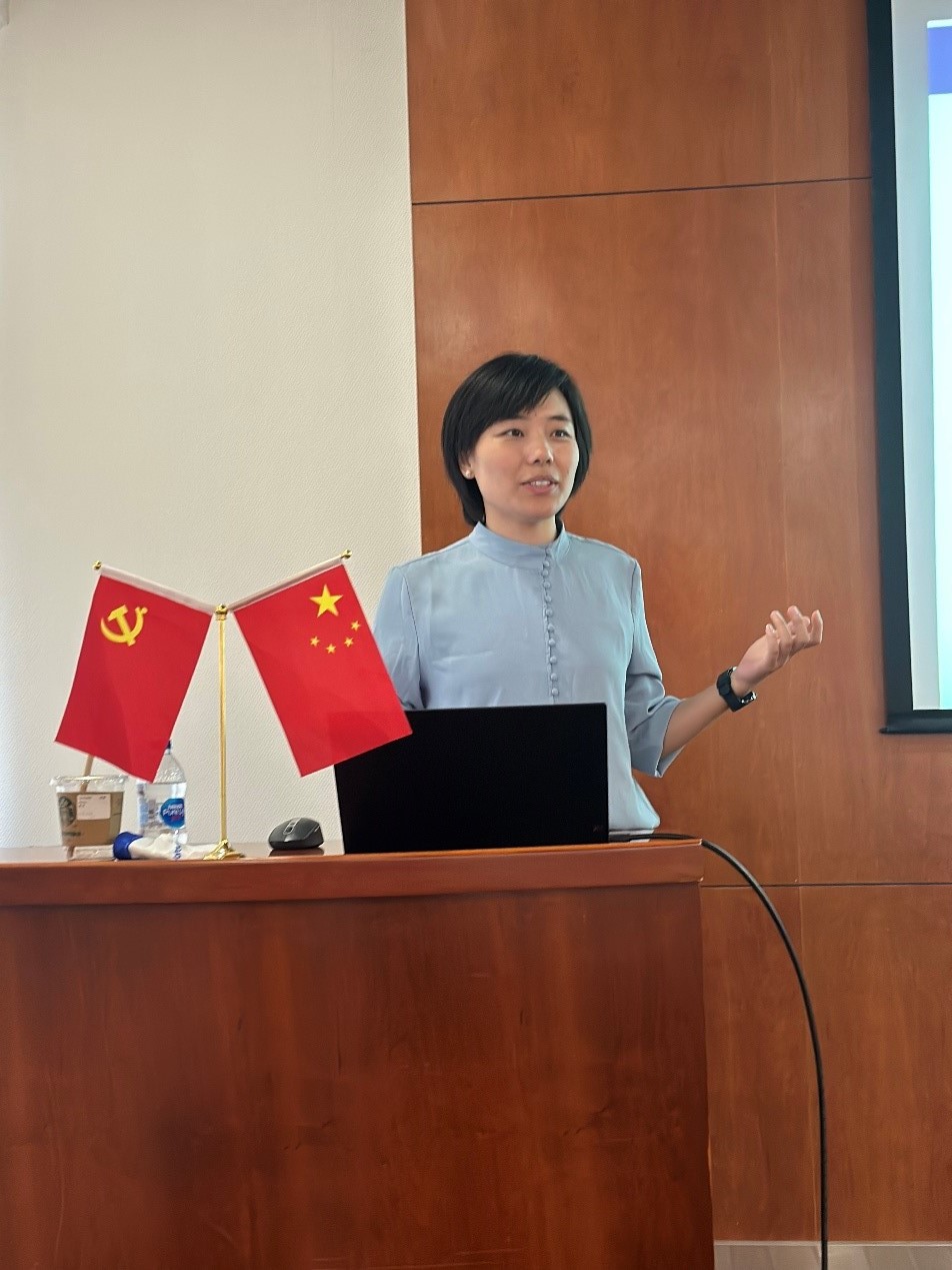 本次活动邀请了中科院脑智卓越创新中心、中科院神经科学研究所竺淑佳研究员与支部党员进行了题为My life-time career with NMDA receptors现场分享。作为中科院上海分院杰出青年科技创新人才以及第十一届上海青年科技英才奖的获得者,竺淑佳研究员围绕二十大报告中关于教育、科技、人才的主旨精神,结合个人科研成长经历,深入浅出地讲述了如何带领团队以科学问题为导向,将个人研究兴趣与国家战略需求相结合,揭示了谷氨酸受体(NMDA receptors)三维结构、门控原理以及揭示快速抗抑郁新药分子机制的科研历程。竺淑佳研究员团队的发现为研发具有我国自主知识产权的新一代抗抑郁新药提供了前沿理论创新,展现了中国科技中坚力量的创新水准。