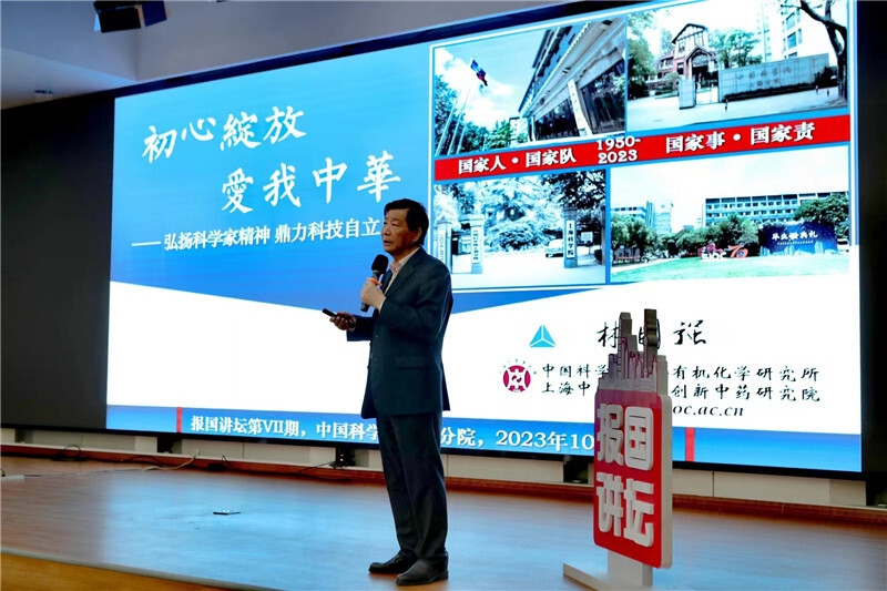 论坛上,林国强讲述了自己作为在共和国红旗下成长的一代,虽没有经历过父辈那时动荡不安的生活,但在上海解放和抗美援朝战争时期,学校播放过的爱国歌曲和爱国电影,在他心灵里播种下了报国为民的种子。大学时期,他积极响应党中央向科学进军的号召,成为有机所的一名研究生。他将人生的每一场经历化成思想和信念成长的养分:在有机所学习期间,他从有机所老先生们身上学到的实验技巧、学术精神和人格品质,为他如今取得的学术成就打造了稳固的根基;在社会主义教育运动时期,他通过田野劳作,与农民相处,对三农问题有了切身的认识,无疑是他日后致力于研究昆虫信息素、生物催化等技术造福农业的伏笔;在中国经济飞速发展的年代,他讲述生活中衣食住行等的变化,让听众深切感受到依靠勤劳与智慧的中国人民将原本落后的国家建设成为如今世界第二大经济体的伟大奇迹,这也是他坚定用科学研究为祖国的经济建设添砖加瓦的信念源泉。
