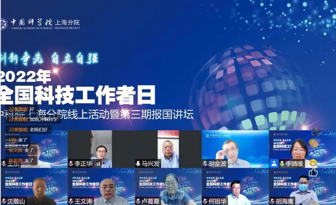 5月30日是第六个全国科技工作者日,为弘扬科学家精神,团结引导广大科技工作者厚植家国情怀、勇于创新争先,中国科学院上海分院以“创新争先、自立自强”为主题举办2022年“全国科技工作者日”中国科学院上海分院线上活动暨第三期报国讲坛。本次活动通过网络在线举办,来自上海分院系统的2100余名科技工作者在线收看。