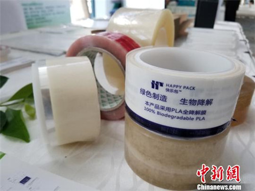 论坛现场展示的可降解工业产品。 王晓斌 摄