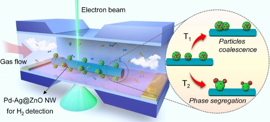 图1 采用MEMS芯片气相原位TEM技术揭示氢气传感器失效机制的示意图