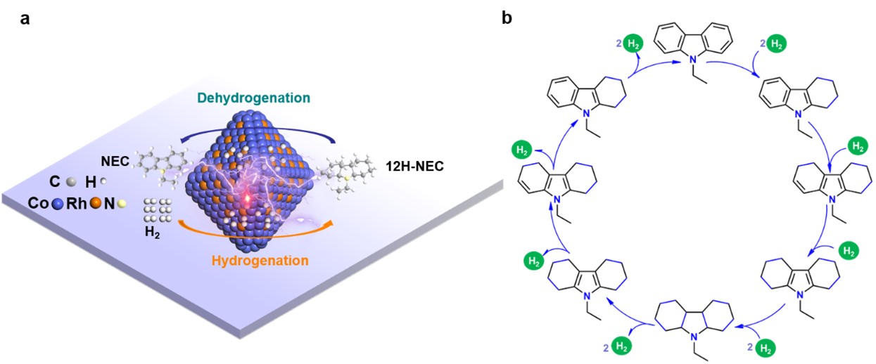 图1 双金属Rh1Co催化剂同时促进NEC加氢和12 H-NEC脱氢反应路径示意图