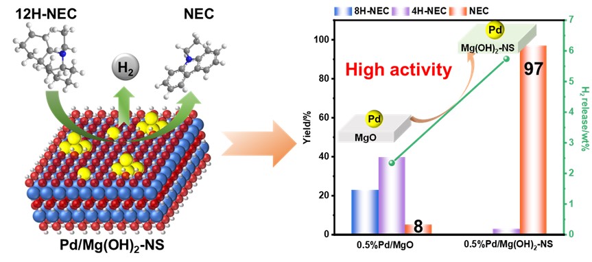图2 二维-氢氧化镁纳米片负载 Pd催化剂用于N-乙基咔唑(NEC)脱氢反应