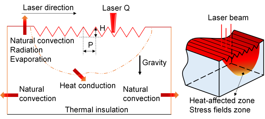 为此,研究人员建立了考虑电磁场、固体传热和结构力学的多物理场耦合模型,揭示了不同形貌下的激光烧蚀波纹在激光辐照下光、热、力场的演化规律。结果表明,烧蚀波纹不仅会导致光强的不均匀分布,还会引发局部温度和应力的显著升高,从而大幅降低元件的损伤阈值和透过率。此外,烧蚀波纹的周期与高度对元件性能的调制作用至关重要,周期介于0.5微米至1微米之间且高度超过500纳米的波纹会显著恶化元件性能,因此在加工过程中应严格避免。本研究不仅为深入理解表面形貌对光学元件性能的影响提供了理论依据,更为高损伤阈值熔石英元件的制造提供了有效指导。