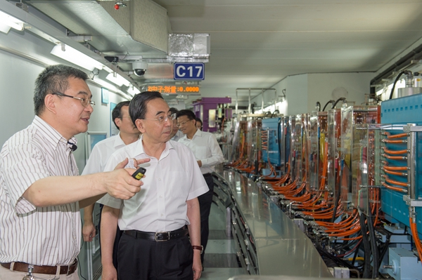 7月20日下午,由广东省委副书记、省长朱小丹,副省长袁宝成率领的广东省代表团一行,在上海市副市长时光辉和中国科学院上海分院院长朱志远的陪同下,来到中国科学院上海应用物理所张江园区,视察上海光源。