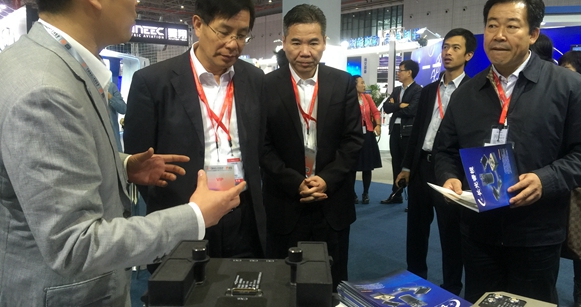 作为主办方之一,本届工博会中科院围绕“中国科学院:科技与未来”的主题,在1300多平米的展区设立了前沿技术区、创新产品区、科技服务平台区等板块,重点展示了21家中科院院属单位在航空航天、智能制造、智能信息等领域所取得的90项优秀成果。邓麦村一行详细了解了暗物质粒子探测卫星、LDM-8060五轴送粉金属打印机、高比能量锂硫电池及锂硫电池组、SimImageTM人体三维成像仪、K-COB 光源模组-600W、超大屏幕RGB全激光投影电视、可动仿生双眼等一批中科院重点推介的创新成果。