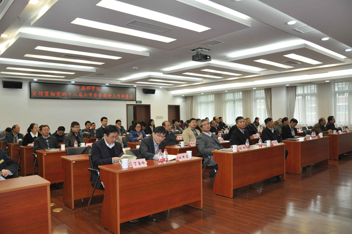 11月10日,上海分院组织参加中科院学习贯彻党的十八届六中全会精神工作部署视频会,分院领导班子也召开专题会议,传达和学习了党的十八届六中全会会议精神。