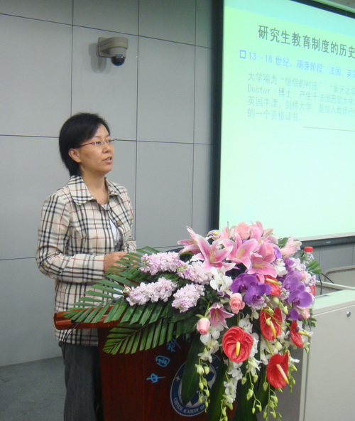 王颖就《研究生教育制度解读》作了专题报告,她全面阐述了国科大的发展历史,对研究生教育政策、招生、学位、评估等相关规定进行了详细讲解。