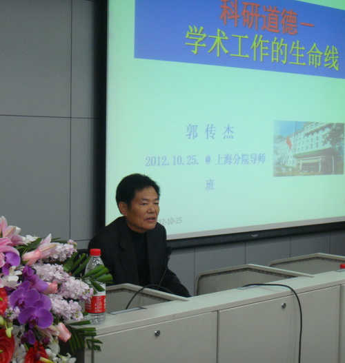 郭传杰首先在研讨班上作了《科研道德—学术工作的生命线》的讲座,郭传杰通过分析大量的国内外案例,指出学术不端行为的危害性,期望导师们应洁身自好并带领研究生恪守学术道德底线,提倡遵守“诚信、创新、理性”的科研精神与态度。