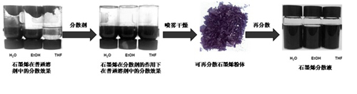 图1:石墨烯分散液和可再分散石墨烯粉体的制备示意图