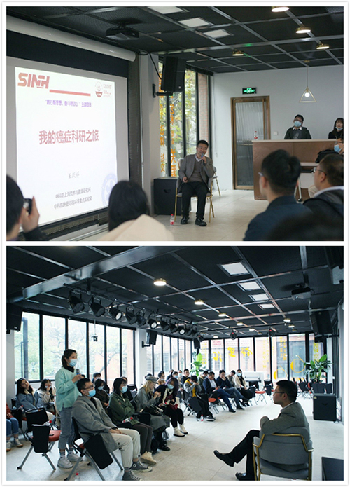 在“对话科研明初心”版块中,特别邀请了中国科学院上海营养与健康研究所-长征医院联合转化医学中心王跃祥研究员,作《我的癌症科研之旅》主题报告。王跃祥介绍了间质瘤恶性进展的新机制及其目前的临床难题,分享了其取得重大原创性科学发现、背后的故事以及其个人成长和科研经历,同时对青年们关注、困惑的科研问题和成长烦恼进行了理性解析并给予了中肯的建议,精彩的报告博得了在场阵阵掌声。