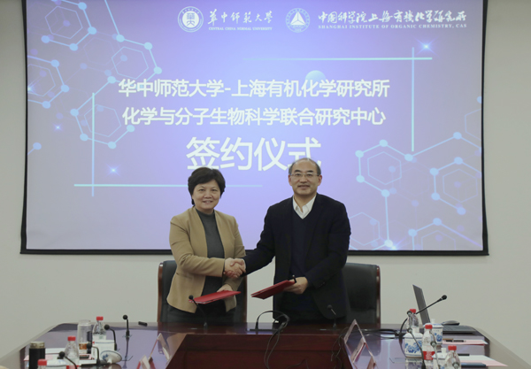 为加强合作与交流,深入推进校所融合工作的开展,发挥高校和科研院所各自在科学研究和人才培养等方面的优势,2021年1月10日,华中师范大学校长郝芳华带队专程来访有机所,就共建华中师范大学与中国科学院上海有机化学研究所“化学与生物分子科学联培研究中心”进行了签约仪式。