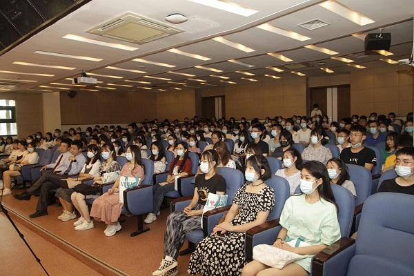 赵强向新生们详细介绍了药物所的历史沿革、园区分布、科研单元、人才队伍、承担项目、代表性成果、国际合作和未来发展规划。他指出在当今我国医药研发水平相较发达国家有差距的情况下,更需要一代代药物所人以饱满的热情和昂扬的斗志为实现国家战略需求而不懈奋斗。