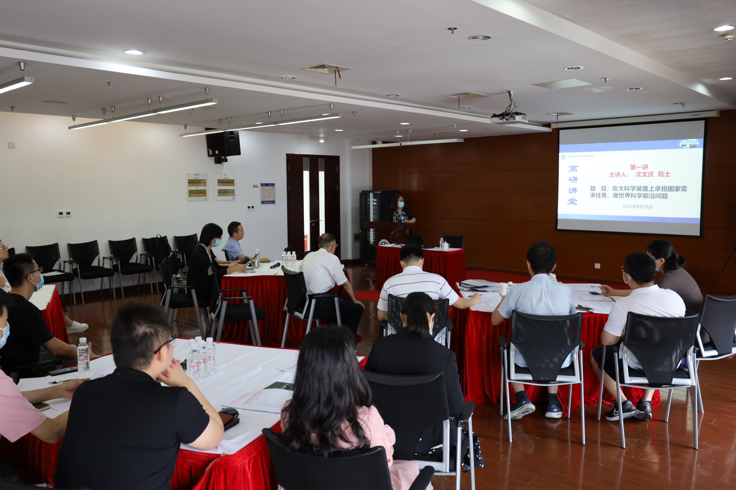 为激励高研院广大青年人才继承和弘扬新时代科学家精神,踔厉奋发,担当作为,8月25日上午,“高研讲堂”第一讲开讲,邀请中国科学院院士沈文庆作“在大科学装置上承担国家需求任务,做世界科学前沿问题”专题报告,党委书记、副院长李燕出席会议,高研院“青促会”成员、特别研究助理、“高研启航”“高研新锐”入选者和优秀学生代表共计20余人参加会议。
