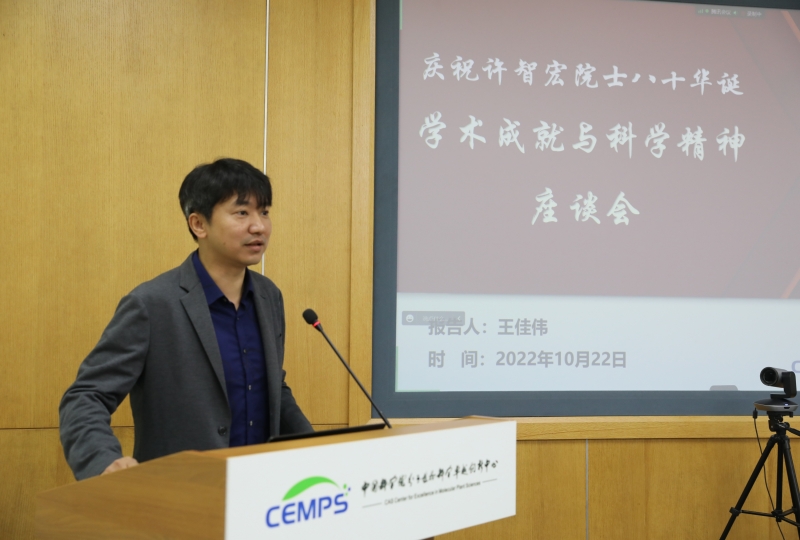 中心党委书记、副主任郭金华宣读了中科院院长、党组书记侯建国贺信。中心副主任王佳伟研究员回顾了许智宏院士的主要学术思想与成就。与会人员还一起观看了专门为许智宏先生制作的视频短片,共同领略了先生“智如水,仁似山,一生芳华许植物生理,宏论道,慧立言,八秩岁月付华夏春秋”的科研人生历程。