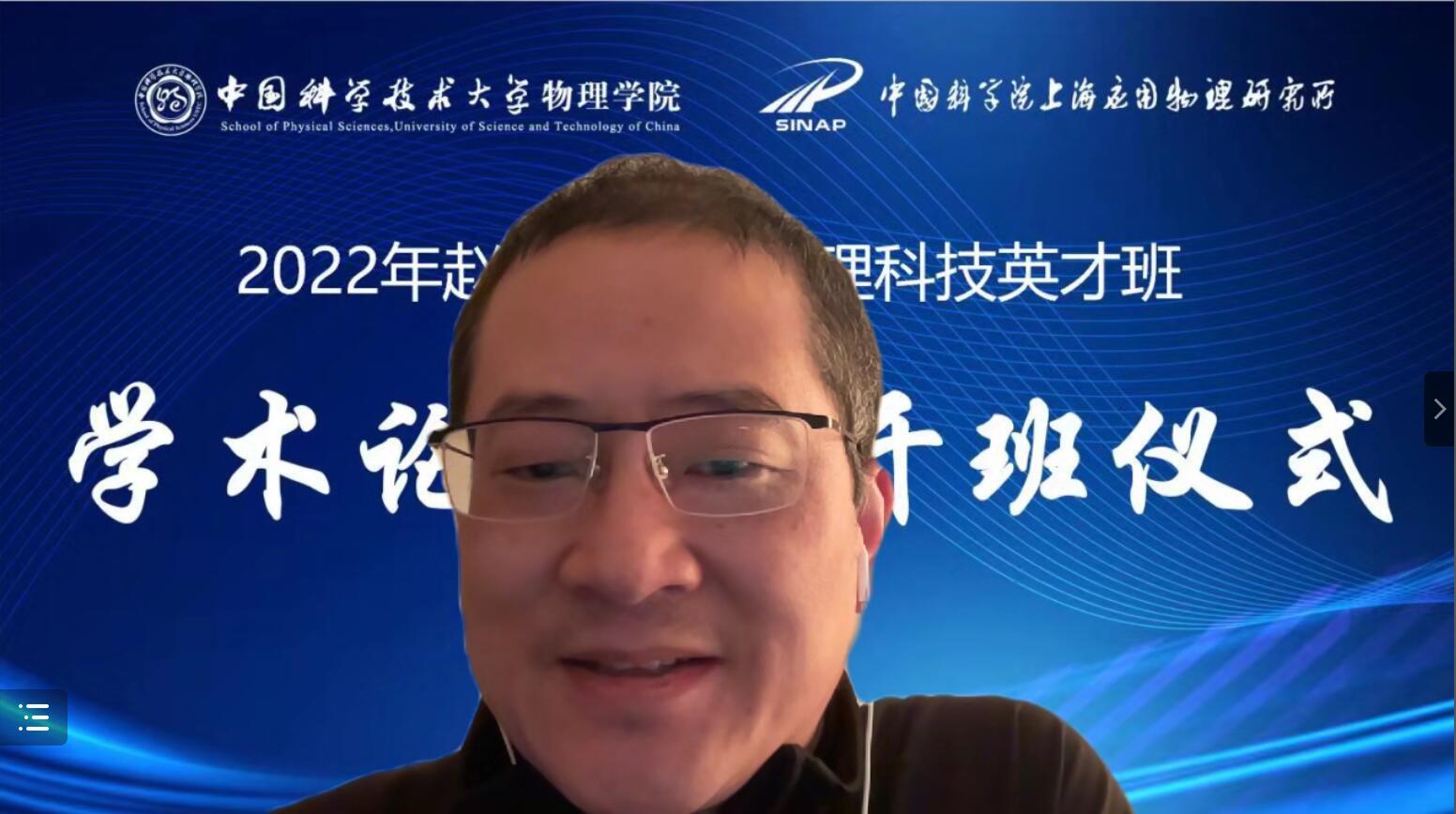 2022年12月11日,由中国科学院上海应用物理研究所和中国科学技术大学物理学院共同主办的“赵忠尧应用物理科技英才班”学术论坛暨第十四届英才班开班仪式成功举办。中国科学技术大学物理学院副院长韩良、党委副书记凌锋、办公室主任李业龙、英才班主管教授王群,上海应物所副所长蔡翔舟、科研与教育处副处长钟静,双方老师及英才班学员共计40余人在线上线下参加了此次活动。本次活动由凌锋主持。