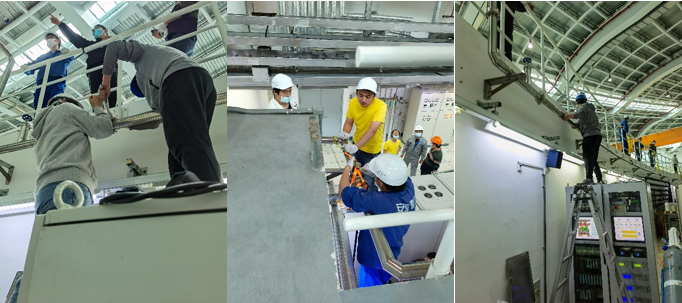在维修过程中,由于管线长度以及内外管尺寸配合导致的活动不便,给现场维修人员造成了不小的困难。但在场的维修成员们群策群力,模组低温项目组和高频组提供了组内的工具,工艺组、辐射防护组及外协单位员工凭借其安装经验,全程指导现场操作。在现场所有员工的共同努力下,液氮管线终于在当日下午3点完成维修,顺利恢复了下游的液氮供给,在场的维修成员们热泪盈眶,激动不已。经反复检测,确认完全排除泄漏隐患后,各专业组成员们这才返回各自的岗位,继续投入到紧张的科研工作中去。