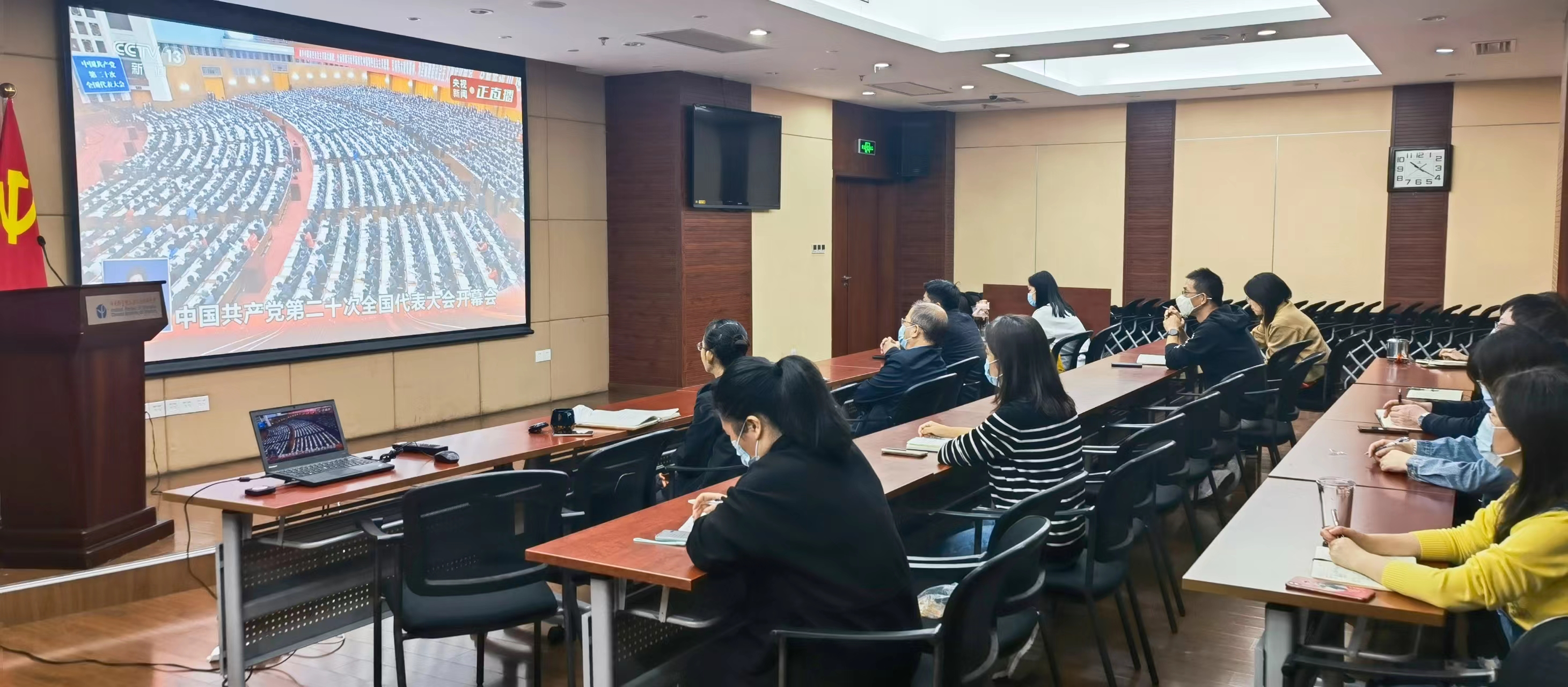 党委理论学习中心组(扩大)成员,包括所领导班子、两委委员、部门负责人、支部书记、群团组织负责人、民主党派、无党派人士代表等近20人在研究所报告厅集中收看学习,各党支部组织党员在线收听收看学习,认真做好学习记录、书写感言。