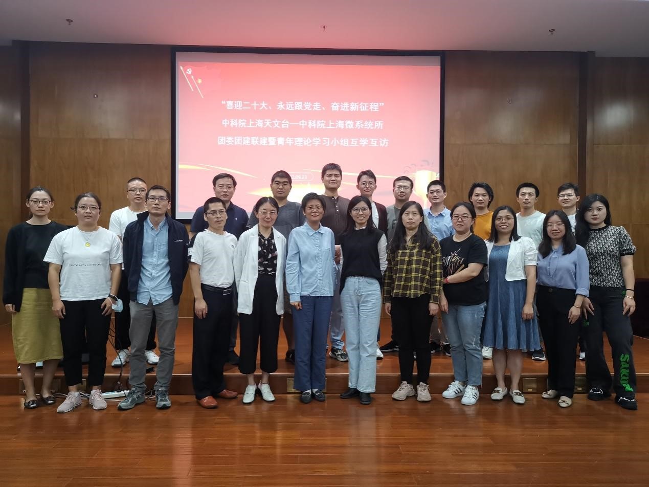 9月23日下午,上海天文台团委、青年创新促进会和上海微系统与信息技术研究所团委、青年创新促进会联合开展“喜迎二十大 永远跟党走 奋进新征程”团建联建暨青年理论学习小组互学互访活动。上海天文台纪委书记姚娅平带队青年理论学习小组成员代表、各党团支部代表一行,前往上海微系统所进行了参观和座谈交流。