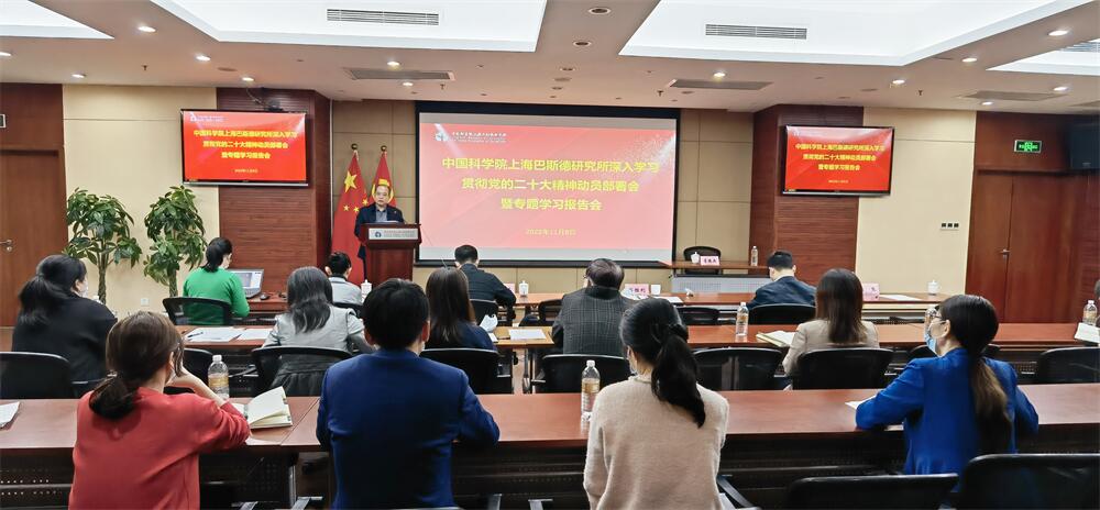 朱熊主任传达领学了党中央、中科院党组、上海分院分党组、沪区党委关于学习宣传贯彻党的二十大精神的相关文件精神和工作要求,对研究所学习宣传贯彻好党的二十大精神提出了要求和意见建议。