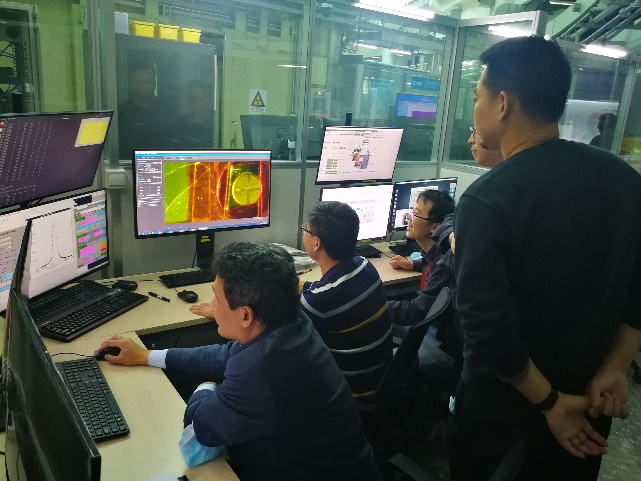 为了抢回被耽误的时间,在邰仁忠副院长的领导下、在束线工程部和兄弟线站的大力帮助下,参与稀有元素分析线站的党员,如线站负责人边风刚,骨干何上明、洪春霞、曾建荣、马建波等同志,充分发挥党员的先锋模范作用,主动放弃节假日,以院为家、夜以继日地进行调试工作,从束线指标,到实验站的高分辨衍射角分辨、高分辨发射谱能量分辨、微聚焦的光斑尺寸和通量等关键指标逐项排查问题,凝心聚力、攻坚克难。功夫不负有心人,在10月25日前,也就是正式验收的前三天,团队终于完成了所有达到验收指标的自测报告,并于10月29日顺利通过了正式的工艺验收测试。