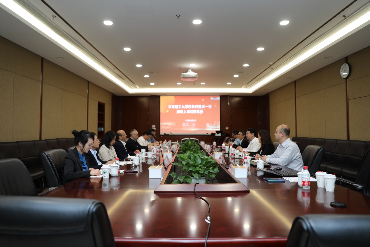 轩福贞简要介绍调研交流的目的和背景,对上海硅酸盐所对此次调研交流的工作支持表示感谢,并重点围绕科学教育深度融合、研究生培养、战略规划制定、人力资源规划等展开座谈交流,同时表达了双方相互合作的工作愿景。