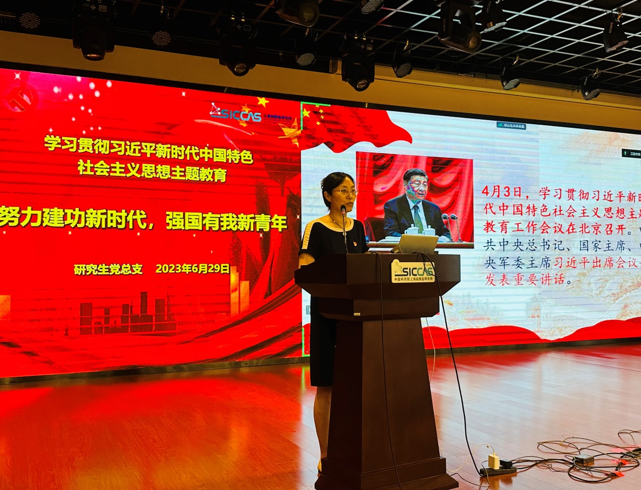 6月29日上午,中国科学院上海硅酸盐研究所研究生党总支组织开展“努力建功新时代,强国有我新青年”主题党日活动,持续深入开展学习贯彻习近平新时代中国特色社会主义思想主题教育。上海硅酸盐所党委委员卓尚军,所务委员、研究生部主任史迅,以及全体研究生党员参加。会议由研究生党总支书记陆彩飞主持。