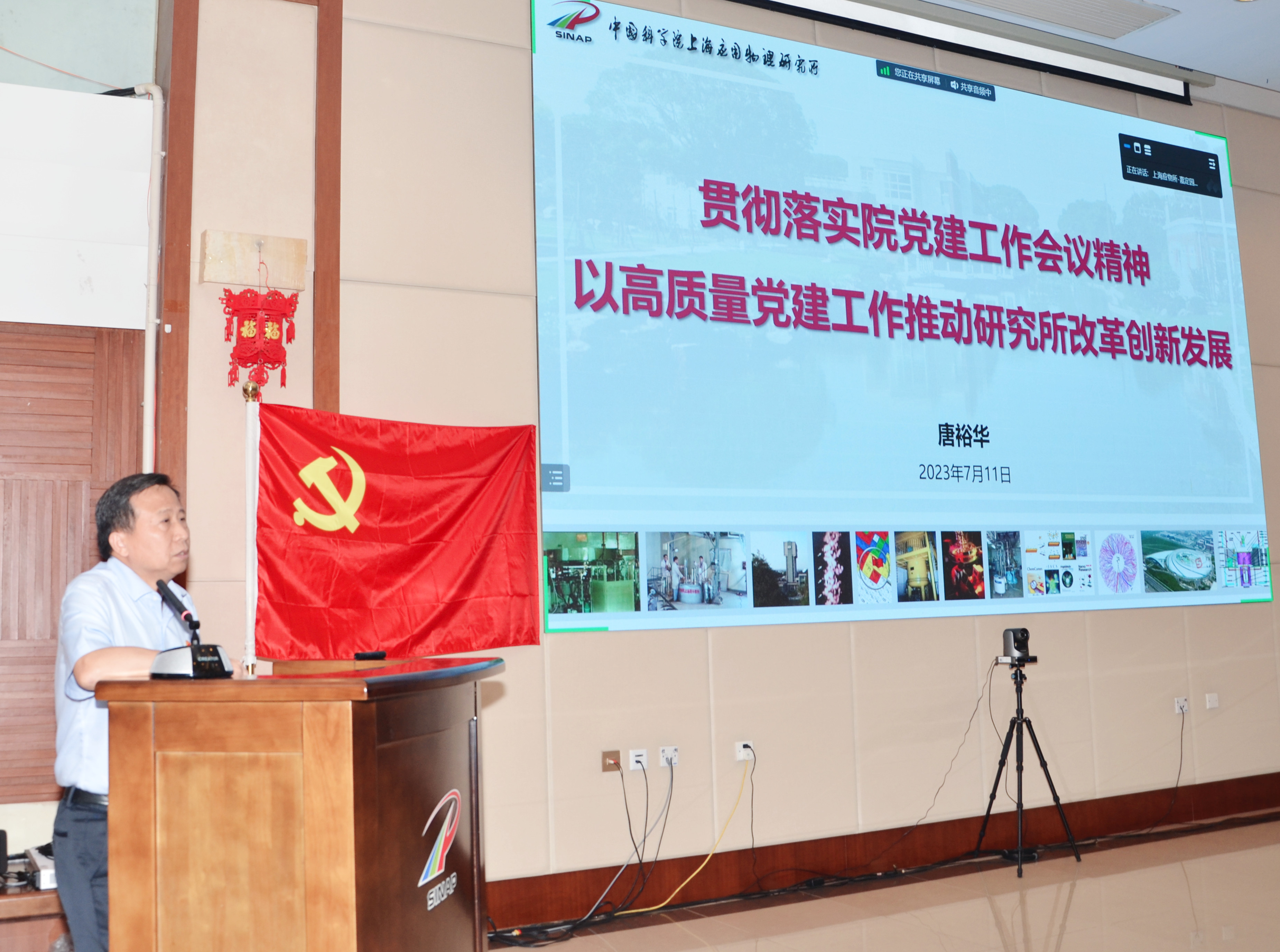唐裕华以《贯彻落实院党建工作会议精神、以高质量党建工作推动研究所改革创新发展》为题,通报了应物所主题教育阶段性工作进展和上半年党建工作简况,传达了院党建工作会议精神,并就落实会议精神和下半年工作作动员部署。