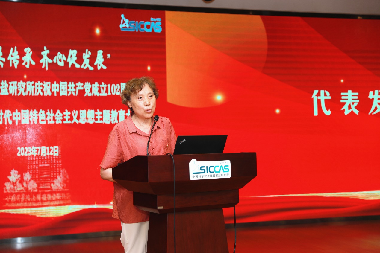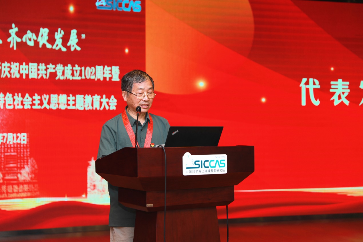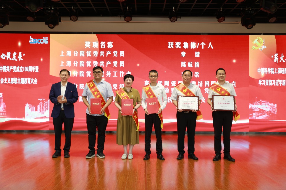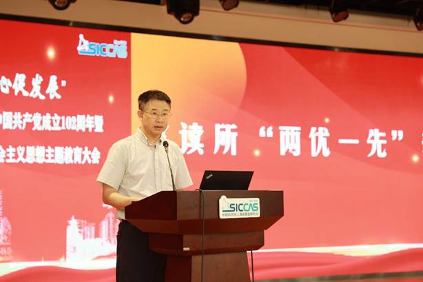 7月12日下午,中国科学院上海硅酸盐研究所召开“薪火共传承、齐心促发展”庆祝中国共产党成立102周年暨学习贯彻习近平新时代中国特色社会主义思想主题教育大会。 上海分院分党组书记、沪区党委书记李正华,党建工作部副主任、纪检监督处(主持工作) 副处长周国丞,上海硅酸盐所所领导、两委委员、中层干部、党支部(总支)书记和委员、工青妇组织负责人、离退休党员代表、在职和研究生党员、青年理论学习小组成员、党外人士代表、获奖个人和集体代表共计400余人参加大会,会议由上海硅酸盐所党委书记、副所长(主持工作)王东主持。