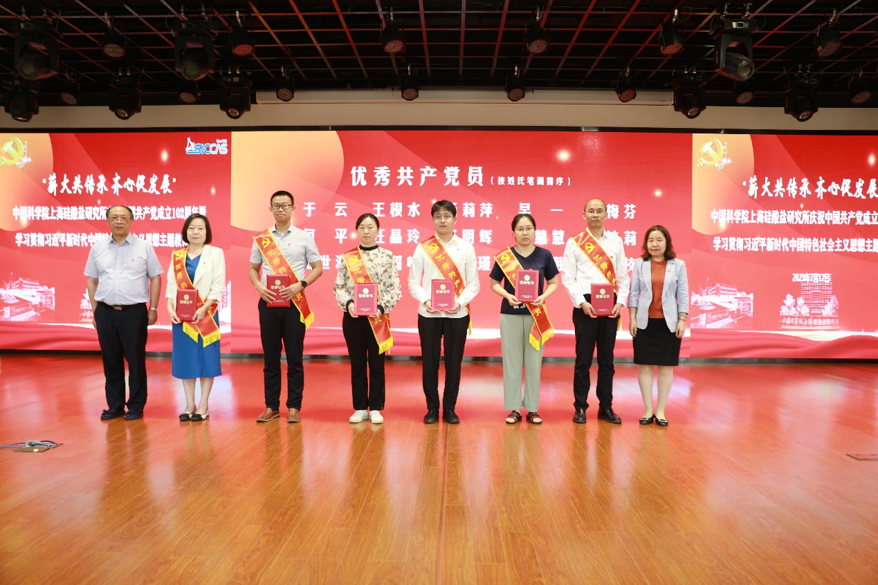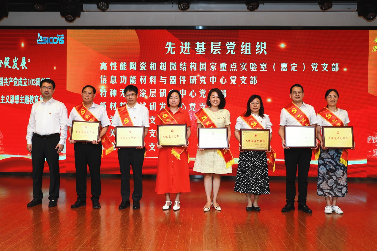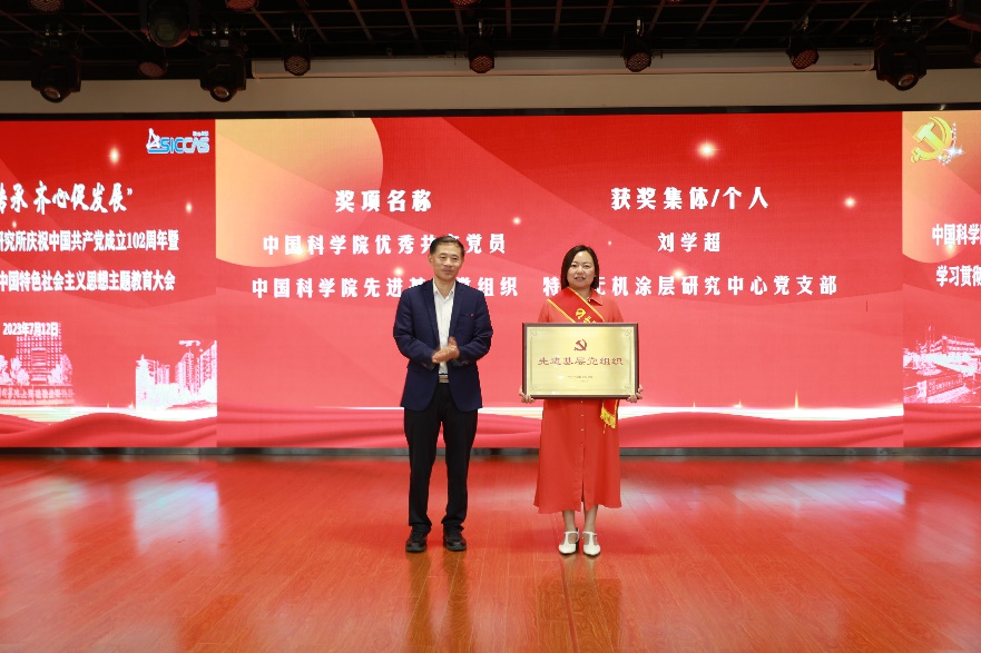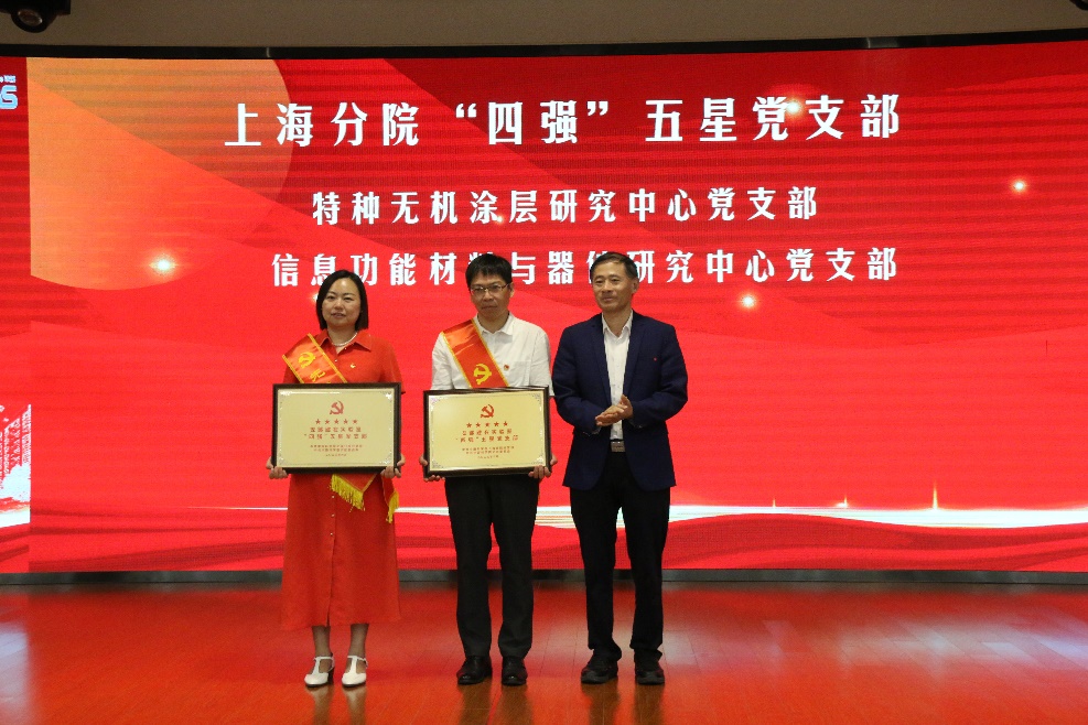 在“先进表彰”环节,党委书记王东宣布2023年中国科学院、上海分院“两优一先”表彰名单、上海分院“四强”星级党支部名单;纪委书记、党委委员杨建华宣读了上海硅酸盐所党委关于“两优一先”的表彰决定。