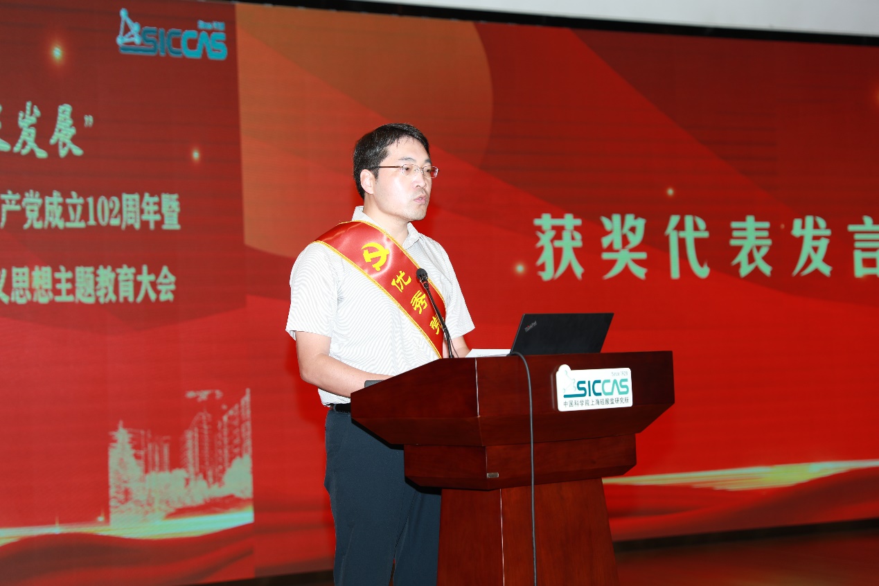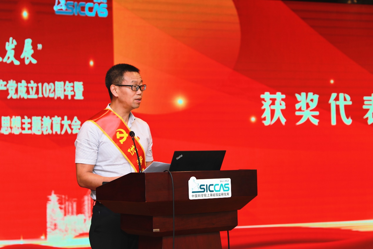 会议邀请“两优一先”代表作交流发言。纪委委员、信息功能材料与器件研究中心主任王根水,能源材料研究中心党支部书记、副主任张涛,高性能陶瓷和超微结构国家重点实验室(嘉定)党支部书记、副主任刘建军分别作交流发言。