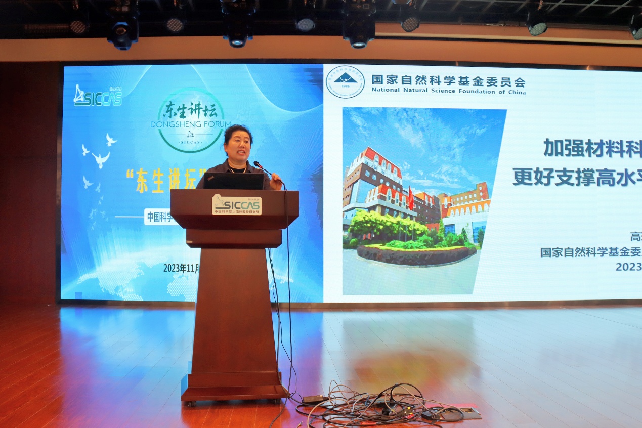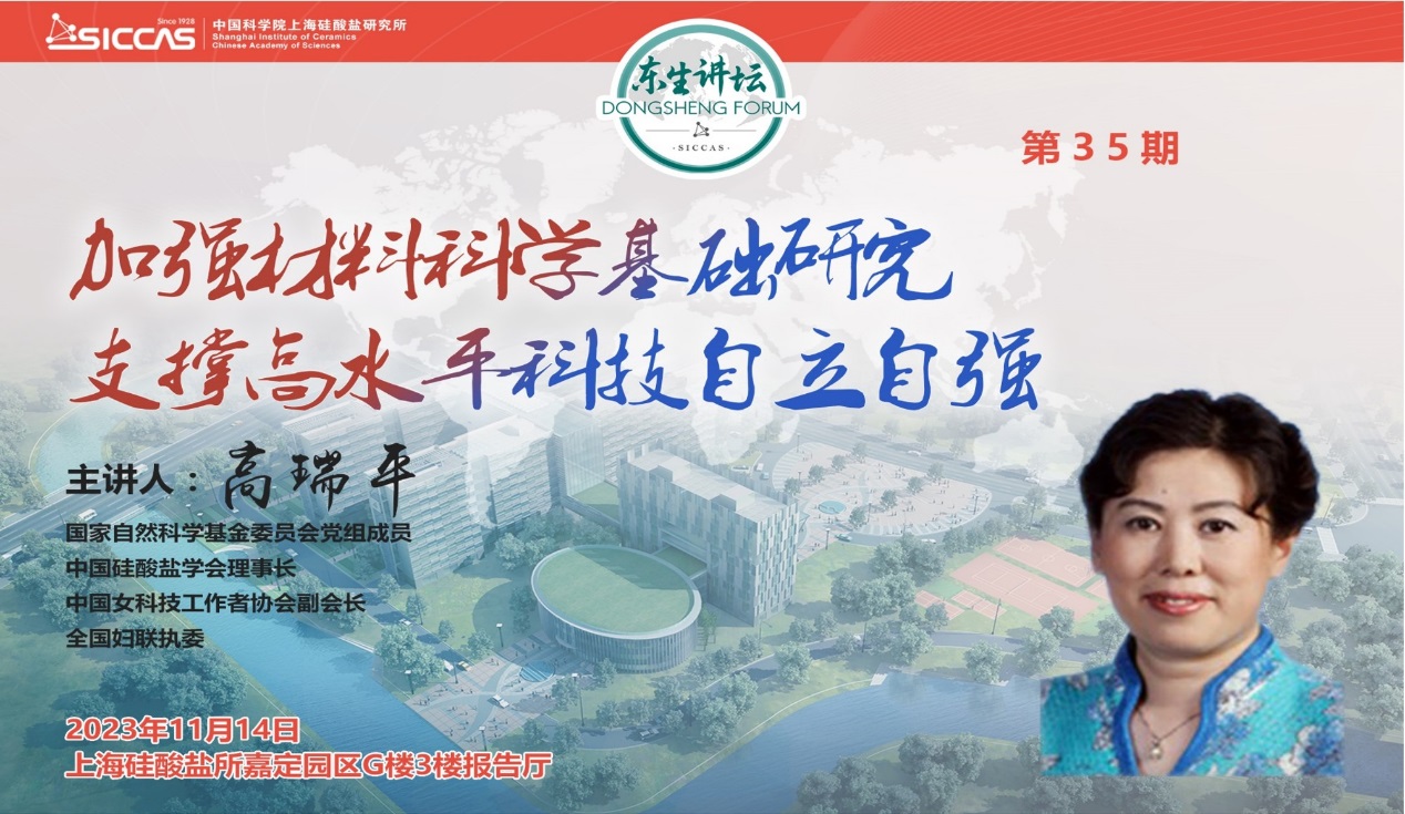 11月14日上午,中国科学院上海硅酸盐研究所在嘉定园区G楼3楼报告厅举办第三十五期“东生讲坛”,邀请国家自然科学基金委员会党组成员、中国硅酸盐学会理事长、中国女科技工作者协会副会长高瑞平作为主讲嘉宾,为上海硅酸盐所400余名科研人员和研究生作了题为“加强材料科学基础研究,支撑高水平科技自立自强”的学术报告。上海硅酸盐所党委书记、副所长(主持工作)王东,副所长史迅,所党委委员宋力昕,高性能陶瓷和超微结构国家重点实验室主任陈立东,所党委委员、所务委员、科技发展部部长闫继娜出席讲坛。讲坛由史迅主持。