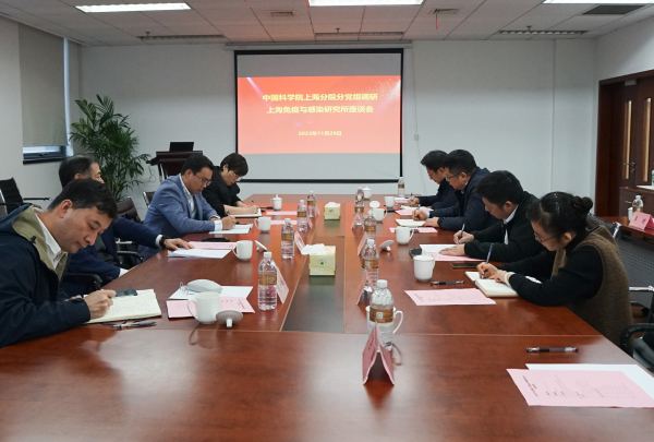 11月29日下午,中国科学院上海分院分党组书记、沪区党委书记李正华一行赴上海免疫与感染所调研,与研究所班子成员及科研骨干座谈交流。上海免疫与感染所领导班子成员、所务委员、两委委员及相关部门人员参加调研。