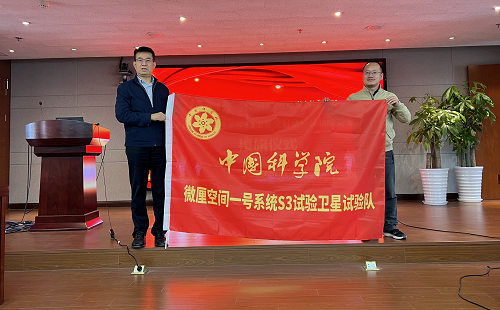 随后,朱振才代表卫星创新院宣读了关于同意成立S3卫星发射试验队的批复,并向试验队队长陈宏宇授予队旗。