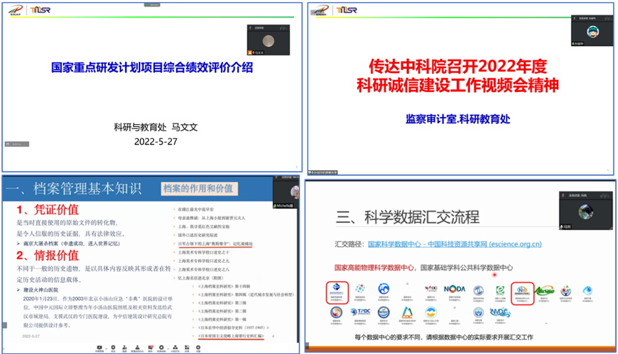 本次培训会分四个主题,分别是“综合绩效评价介绍”“科研诚信”“科研档案”和“数据汇交工作交流”。