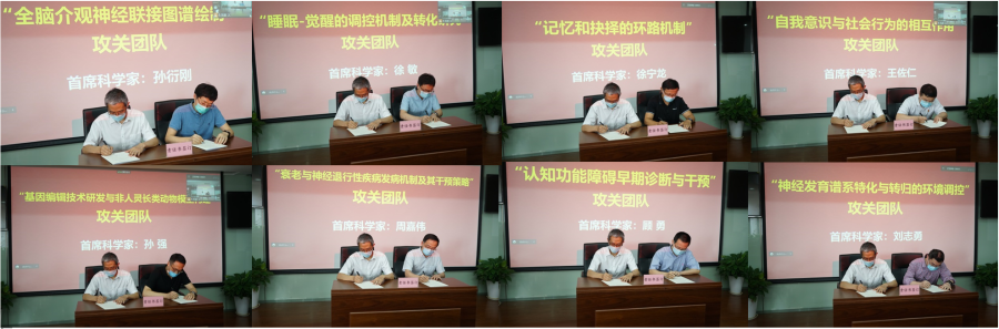 中心党委副书记(主持工作)、副主任王燕代表中心领导班子宣读了《关于公布“十四五”重大科研任务首批“揭榜挂帅”榜单及首席科学家的通知》,并向入选的首批榜单及首席科学家表示祝贺。中心“十四五”首批榜单和首席科学家共两类9个,包括“自上而下”的8个榜单及首席科学家:全脑介观神经联接图谱绘制(孙衍刚)、睡眠-觉醒的调控机制及转化研究(徐敏)、记忆和抉择的环路机制(徐宁龙)、自我意识与社会行为的相互作用(王佐仁)、基因编辑技术研发与非人灵长类动物模型构建(孙强)、衰老与神经退行性疾病发病机制及其干预策略(周嘉伟)、认知功能障碍早期诊断与干预(顾勇)、脑机接口技术及其临床应用(李澄宇);“自下而上”的1个榜单及首席科学家:神经发育谱系特化与转归的环境调控(刘志勇)。