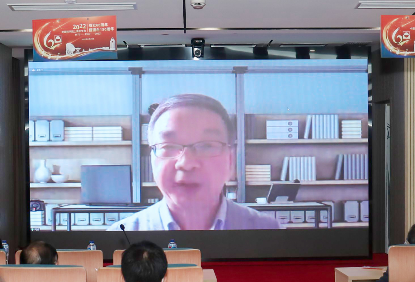 中国天文学会理事长韩占文通过视频形式祝贺上海天文台成立60周年暨建台150周年。他表示,中国天文学会将继续积极为中国天文学家搭建平台,增进国内各天文研究机构、教育机构和科普机构的互动与交流,促进学科发展和人才培养;希望上海天文台和全国广大科技工作者继续艰难求索,勇攀高峰,将中国现代化天文事业不断发展壮大,为中国天文事业、为中华民族伟大复兴做出无愧于时代的贡献。