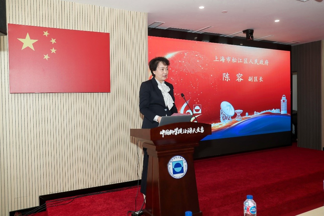 上海市松江区人民政府副区长陈容祝贺上海天文台成立60周年暨建台150周年。她表示,上海天文台佘山科技园区、上海天文博物馆、65米“天马”射电望远镜和25米射电天文望远镜都坐落在有着“上海之根”之称的松江;期待上海天文台继续保持勇于拼搏、积极创新的精神状态,取得更多原创性、引领性的天文学研究成果,为区域经济社会发展,为我国加快实现高水平科技自立自强做出新的积极贡献。