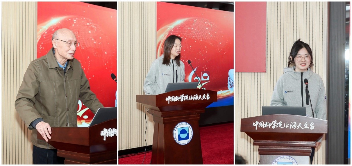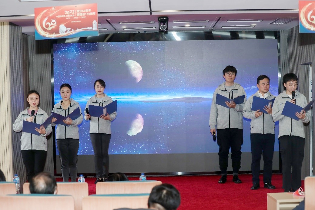 在活动上,退休老职工钱志瀚、中青年职工代表孟文东和青年学生代表罗秋怡分别上台发言,在祝福上海天文台60生日快乐的同时,表示将继续弘扬好科学家精神,心系“国家事”、肩扛“国家责”,传递好历史的接力棒,矢志不渝的为国家和人民奋斗。